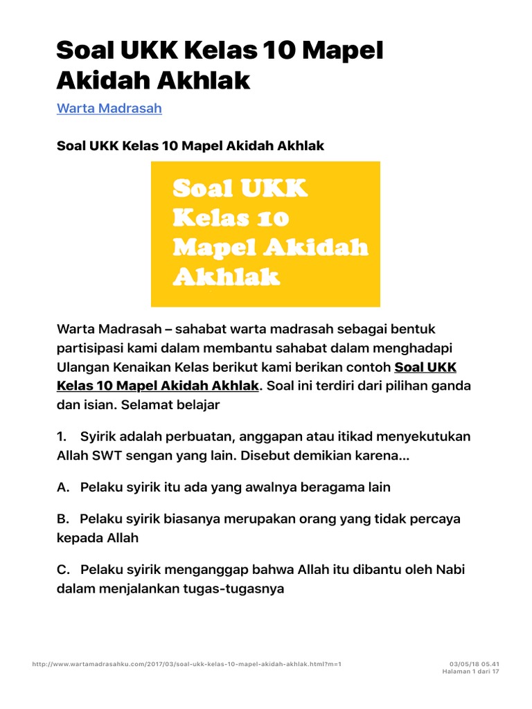 104 Contoh Soal Akidah Akhlak Ma Kelas 10 Kurikulum 2013